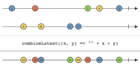 두 Observable의 데이터 타입이 달라도 되고 1:1 매핑이 되지 않아도 된다.