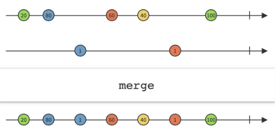 여러개의 독립적인 Obeservable을 하나의 Observable에 합쳐서 보여준다.