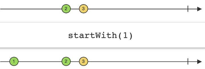 데이터들을 방출하기 전에 설정한 요소를 처음으로 시작하여 스트림을 시작할 수 있다.