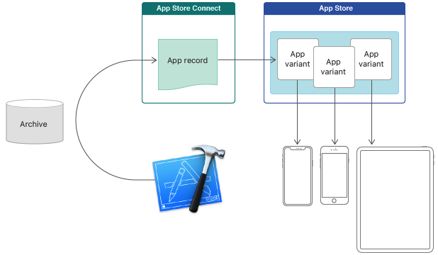 개발자가 앱스토어 커넥트에 풀버전의 앱 빌드를 업로드하게 되면 앱스토어는 자동적으로 variants를 생성하고 전달한다.