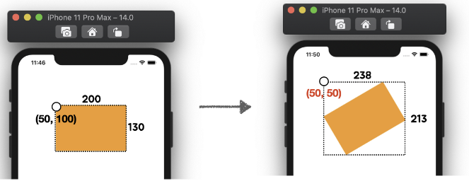 View를 회전시켜도 View를 감싸는 사각형에 대한 width, height를 표시한다.